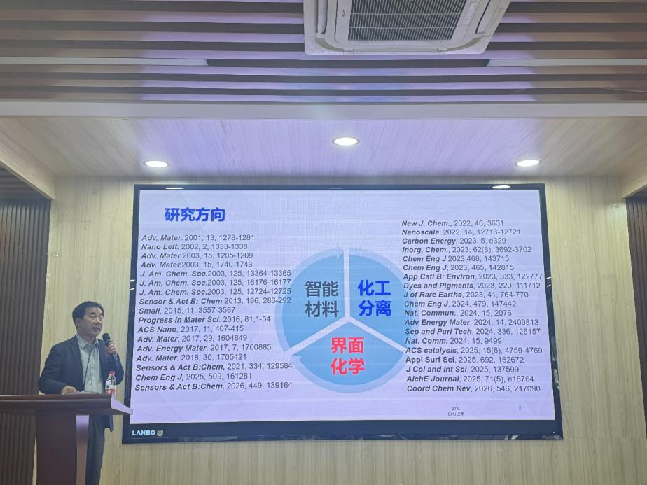 2026年1月16日下午,环境科学与工程学院于工学3号馆208报告厅举办题为“智能材料的设计合成、机理研究及其应用”的学术讲座。济南大学材料科学与工程学院院长、智能材料与工程研究院院长蒋绪川教授担任主讲人,现场近200名师生到场聆听,共同探索智能材料领域的前沿魅力。