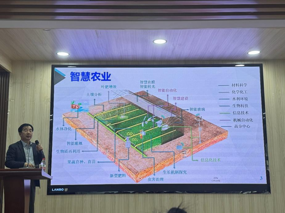 在农业提质领域,蒋教授介绍了稀土转光材料在农膜中的创新应用——智慧转光农膜的研发与实践。该农膜可提升棚温,助力作物早熟、增产提质,同时减少病虫害发生率和农药化肥使用量,为生态农业发展注入了科技动力。